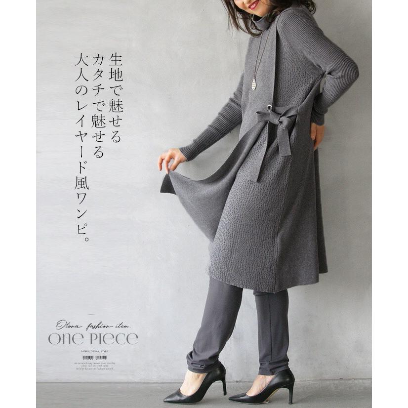 Otona 40代 50代 60代 ワンピース ニット グレー 生地で魅せるカタチで魅せる大人のレイヤード風ワンピ T576ko Otona 通販 Yahoo ショッピング